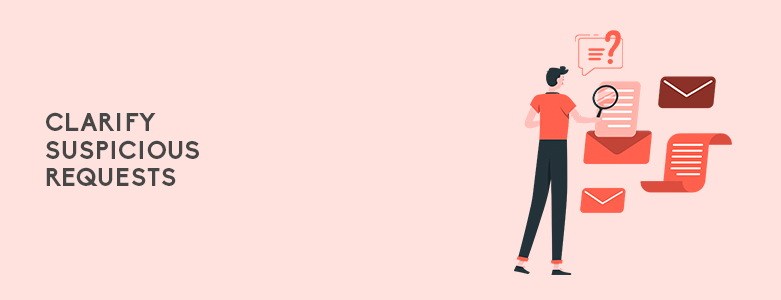 Employees should always request clarification for suspicious requests through other channels before authorizing transactions. One method is to pick up the phone and call to confirm first.