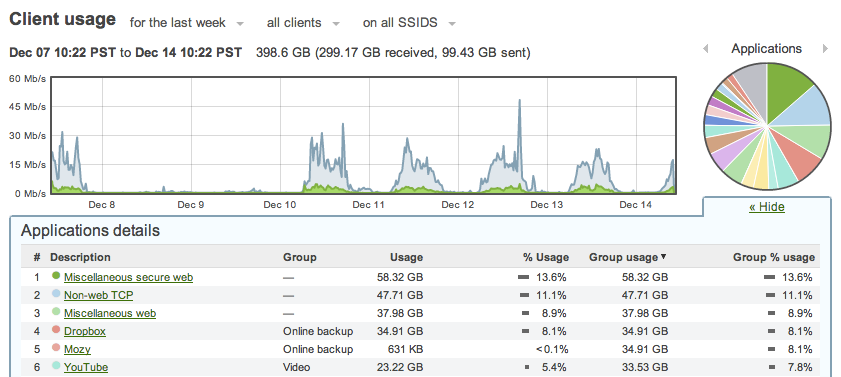 However, administrators can now feel reassured with Cisco Meraki’s Layer 7 application fingerprinting which gives them a better view of their network. Network administrators/managers can rely on this level of visibility every day to see beyond the size and rate of data transfers on their networks and gain insight into the actual behavior of their users. It’s useful to see patterns in large spikes of traffic on the network, but it’s even better to know whether those spikes are coming from online backup or from BitTorrent.
