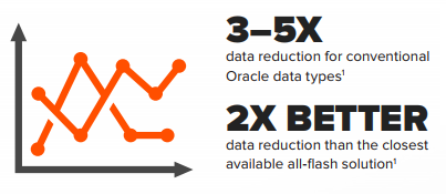 - Pure Storage solutions include both in-line lossless deduplication and compression for ultimate data reduction, which can help data reduction of 3 – 5 times the conventional Oracle® data types — such as number, date, char, and varchar.